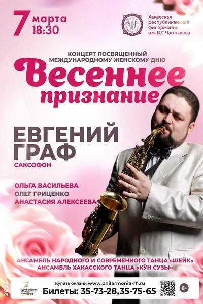 Праздничный эстрадный концерт «Весеннее признание» пройдёт на сцене Хакасской республиканской филармонии в честь Международного женского дня 8 марта.