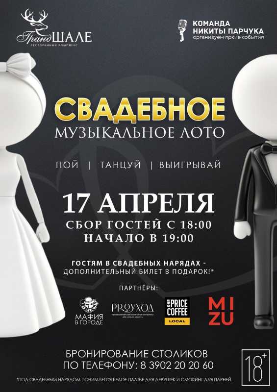 Команда Никиты Парчука @parchuk_team приглашает всех любителей ярких событий на МУЗЫКАЛЬНОЕ ЛОТО в свадебном стиле!