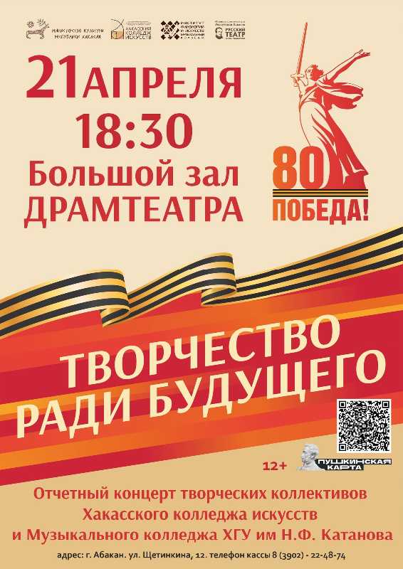 В яркую разнообразную концертную программу вошли выступления лучших студенческих коллективов: оркестра хакасских народных инструментов, оркестра русских народных инструментов «Караван», эстрадно-симфонического оркестра, студенческого эпического театра «Живое слово», ансамбля народного и современного танца «Шейк», фольклорного ансамбля «Горенка», эстрадного вокального ансамбля. От фольклора до джаза, от народной пляски до седьмой симфонии Шостаковича – калейдоскоп сменяющихся концертных номеров удивит разнообразием жанров.