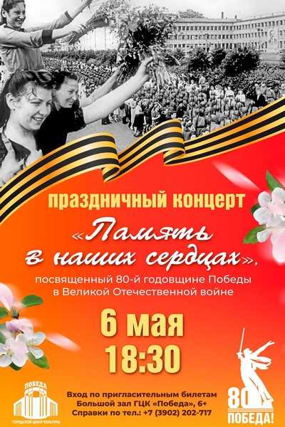 Вход по пригласительным билетам, которые можно получить на вахте ГЦК «Победа».