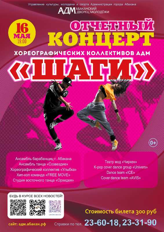 Отчетный концерт «Шаги» – это не только праздник для танцоров, но и незабываемое событие для всей семьи. Здесь каждый найдет что-то для себя: от захватывающих дух хореографических номеров до лирических и трогательных композиций. Разнообразие жанров и техник исполнения не оставит равнодушным даже самого искушенного зрителя.
