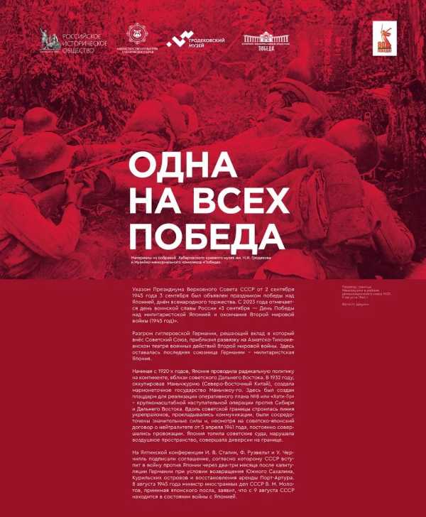 Выставка «Одна на всех ПОБЕДА» - это масштабный историко-документальный проект, раскрывающий ключевую роль Советского Союза в освобождении народов Европы и Азии, а также героизм участников Южно-Сахалинской и Курильской десантной операций.