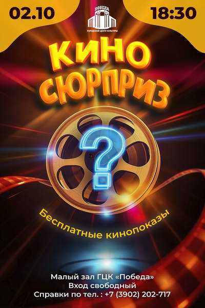 «Кино сюрприз» – это необычный формат кинопоказа, который становится все популярнее! Зрители приходят на показ, не зная, какой фильм их ждет. Это добавляет элемент неожиданности и азарта, превращая поход в кино в настоящее приключение.