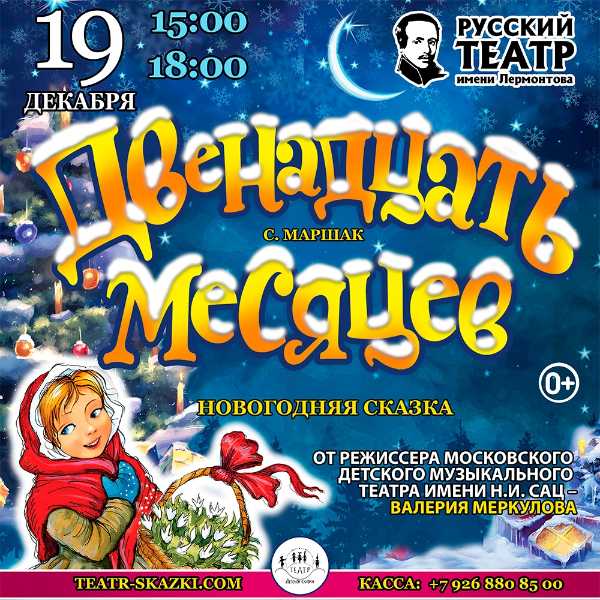 Одна из самых любимых Новогодних историй, воплощена в постановке большого режиссера, заслуженного деятеля искусств Российской Федерации - из Московского детского музыкального театра Сац, обладателя множества театральных наград Валерия Меркулова. Полный волшебного очарования заснеженный лес возникает перед зрителями, как только откроется занавес. В этом мире чудес, у новогоднего костра героиня — бедная девочка — встречает 12 братьев-месяцев, которые помогут ей в трудную минуту. И вот среди снегов расцветают подснежники, а в судьбе главной героини происходит счастливый поворот. Ни богатство, ни власть не помогут совершить чудо, которое возможно лишь благодаря доброте, ласке и готовности всегда прийти на помощь.