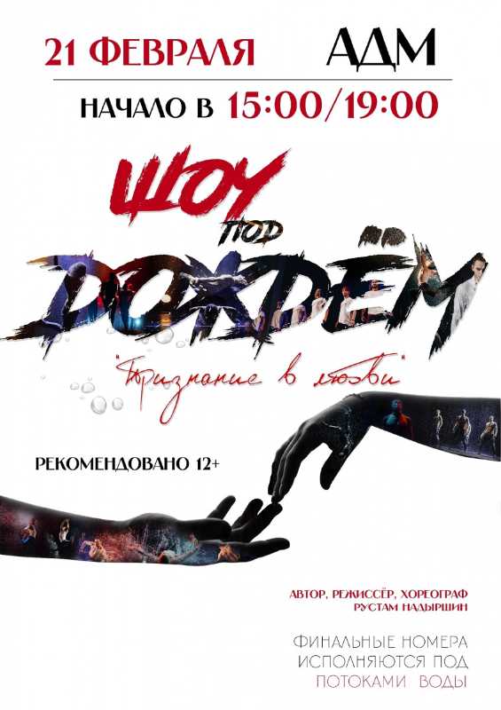 Санкт-Петербургский театр танца «Шторм» гарантирует, что зрители окунутся в бурю эмоций, и почувствуют безграничную силу танца. В финале номера исполняются под потоками воды!