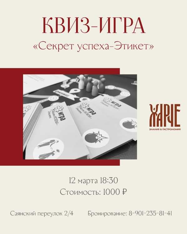 За два часа мы погрузимся в тонкости этикета в игровом формате: кубик, фишки, вопросы по 5 темам.