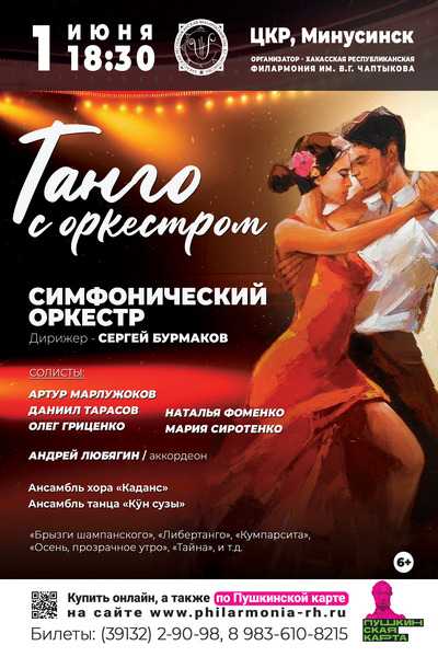 В программе - популярные произведения «Брызги шампанского», «Либертанго», «Кумпарсита», «Осень, прозрачное утро», «Тайна», и многое другое из жанра зажигательного страстного танго.