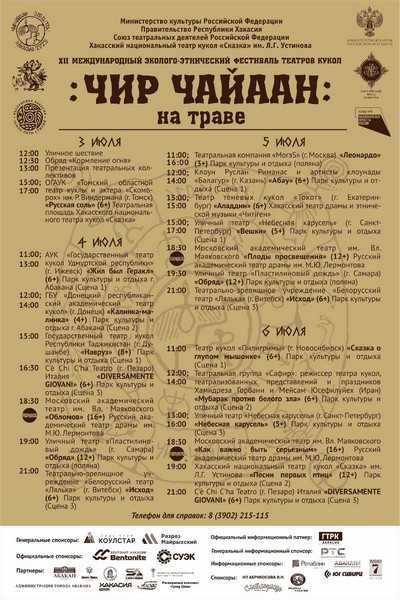 13:00/15:00 Театр теневых кукол «Тохот» (г. Екатеринбург) «Аладдин» (6+) Хакасский театр драмы и этнической музыки «Читiген».
