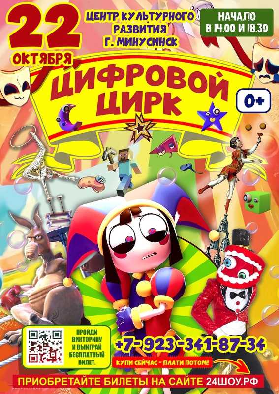 Билеты на 18:30 в продаже на нашем сайте https://24шоу.рф.и, онлайн-кассе ЦКР по ссылке: https://quicktickets.ru/minusinsk-ckr?ysclid=m197xr5k2t391857117