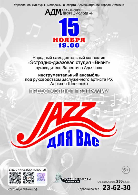 В программе прозвучат как известные всем композиции в стиле джаз, так и каверы на произведения, которые точно удивят вас своим звучанием. Отличная возможность приятно провести холодный осенний вечер, согревшись ритмами джазовой музыки.