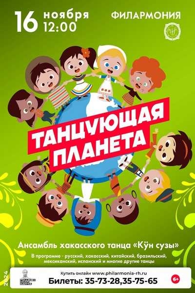 Удивительное и веселое кругосветное путешествие, в котором юные зрители познакомятся с танцами разных народов мира в исполнении артистов ансамбля хакасского танца «Кӱн сузы». В программе - русский, хакасский, китайский, бразильский, мексиканский, испанский и многие другие танцы.