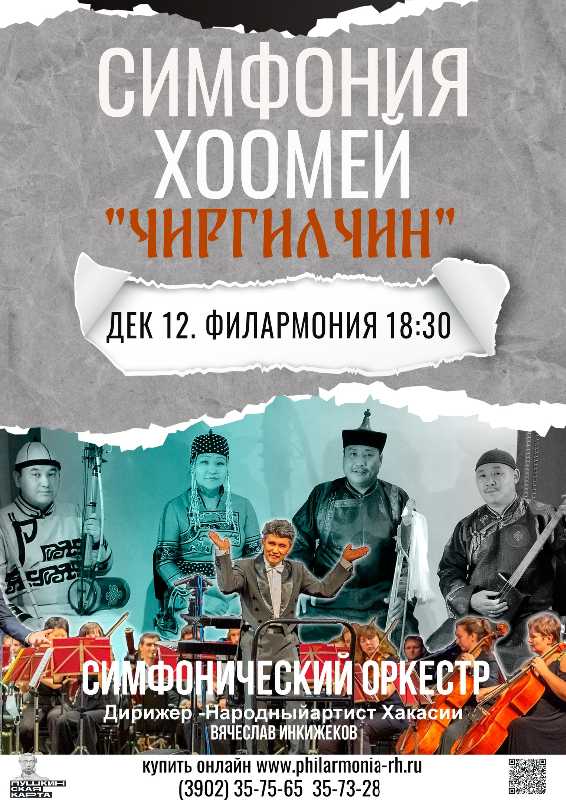 Хоомей – это голос предков, жемчужина всей тувинской земли. Это природа, быт, кочевой образ жизни тувинского народа. Это древнее, уникальное искусство объединяет людей всего мира. В данном проекте органично сливается аутентичное звучание горлового пения, национальных инструментов и симфонического оркестра.