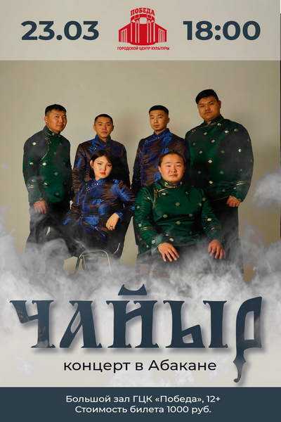 Молодая и яркая группа «Чайыр» из Республики Тыва, созданная в 2022 году, приглашает на концерт в Городской центр культуры «Победа». В составе группы все участники – профессиональные музыканты, окончившие Кызылский колледж искусств, в репертуаре как авторские национальные песни, так и каверы на всем известные песни.