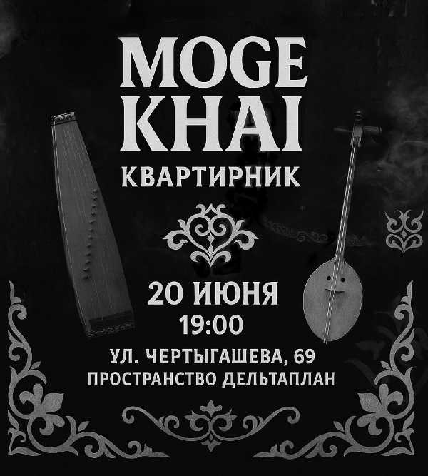 Теплая встреча, живая музыка, душевный вечер в кругу друзей и традиций. Фольклор, авторские композиции, национальные инструменты и звук, наполненный духом Хакасии в исполнении этно-группы MOGE KHAI