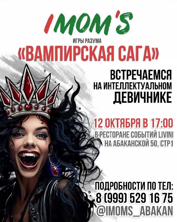 Кровь стынет в жилах… и закипает от предвкушения! Ведь впереди открытие сезона: пугающе горячий интеллектуальный девичник IMOM’S «ВАМПИРСКАЯ САГА»