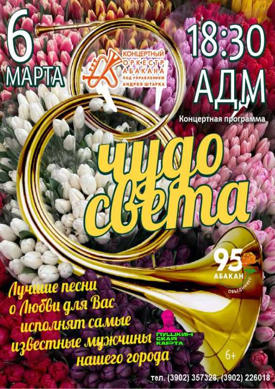 Весенние предпраздничные концерты — это подарок, который Концертный оркестр Абакана ежегодно делает женщинам. Концерты никогда не повторяются. Каждое «8 марта» — это новая программа, наполненная сюрпризами и неожиданными открытиями.